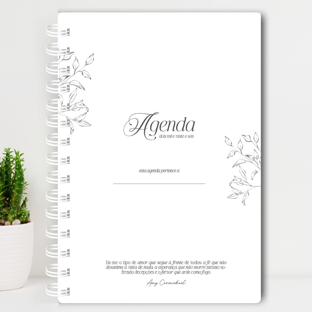 Trabalhamos com o wire-o tradicional branco. Em algumas artes conseguimos colocar preto ou cobre, caso combine com a arte. O espiral vai de acordo com a disponibilidade de estoque, mas sempre entraremos em contato para definirmos a cor antes de finalizar o pedido.