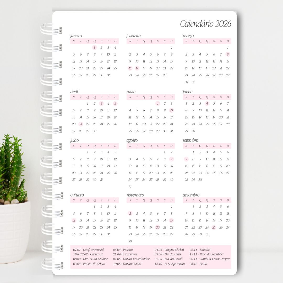 Planeje cada detalhe do seu ano com muito estilo, organização e praticidade!