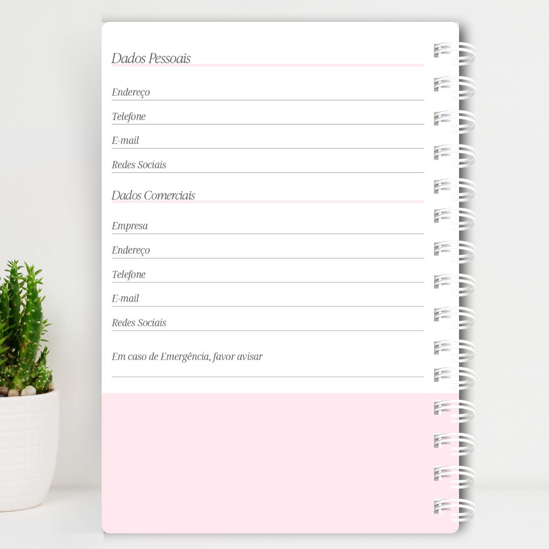 Nome na capa: após a confirmação do pedido, nossa equipe entrará em contato para solicitar o nome desejado para personalização. Fique atento à grafia, pois esse será o nome que aparecerá na sua agenda!