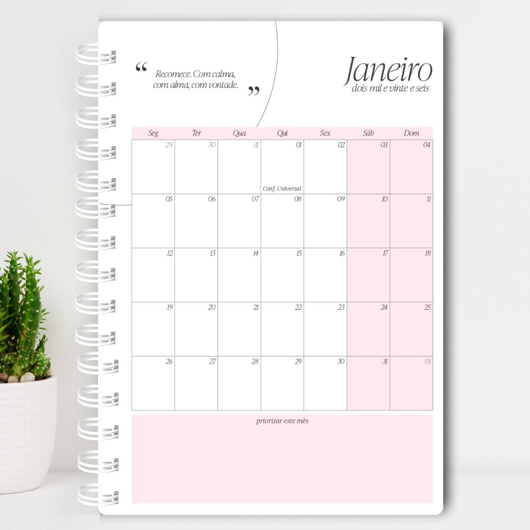 A Agenda 2026 no tamanho A5 foi desenvolvida para quem busca funcionalidade e personalização, oferecendo diferentes modelos para se adaptar à sua rotina. Escolha o layout que mais combina com você e aproveite uma agenda feita para simplificar o seu dia a dia.
