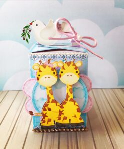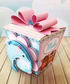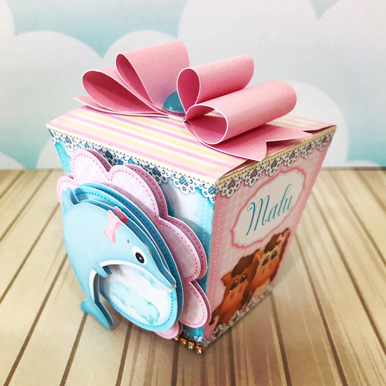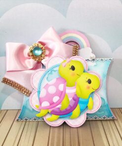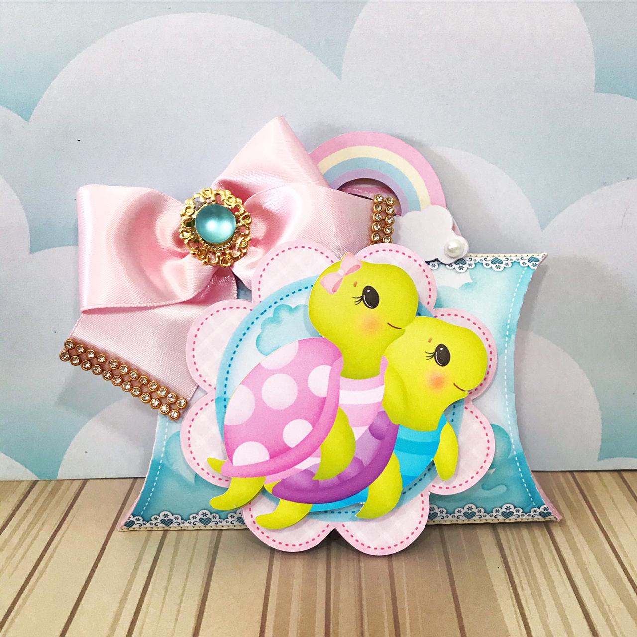 Produzida com papel offset 180g + apliques 3d + aplicação de strass + laço com tag e chaton